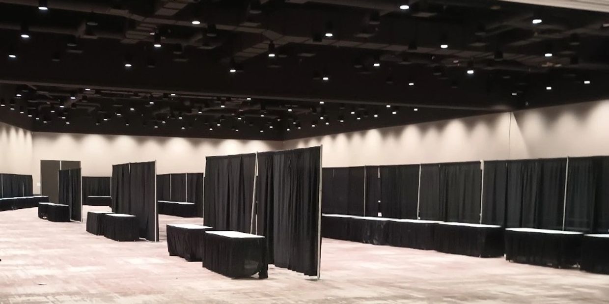 Customizable Booth Backdrops: Create a clean, consistent, and branded look for your event with our extensive selection of drape colors and configurations. From standard booth divisions to elegant VIP areas, we tailor solutions to fit your specific needs.